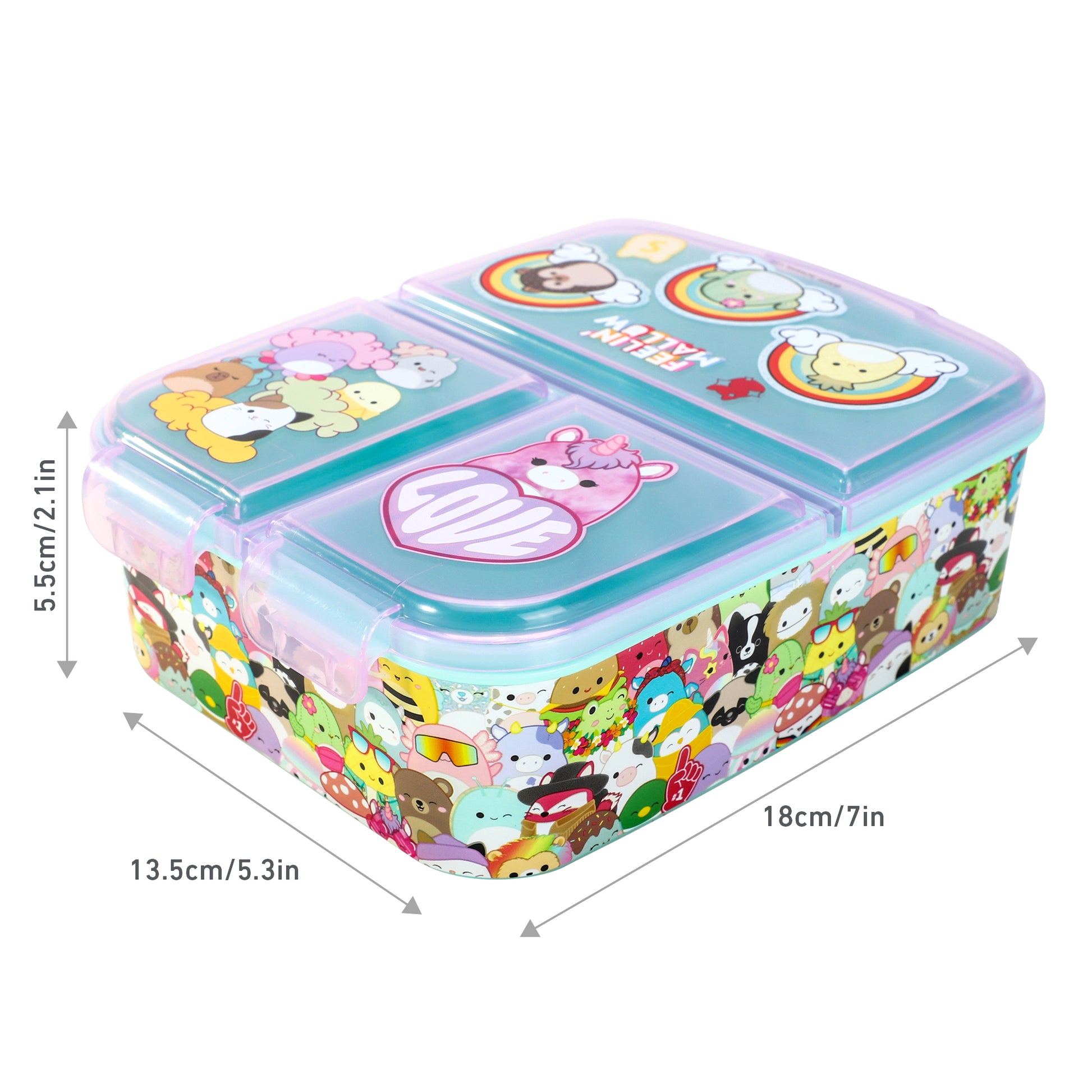 Squishmallows Kids Childrens Multi Compartment Rectangular School Travel Lunch Food Box Sandwich Bento Container, BPA Free
