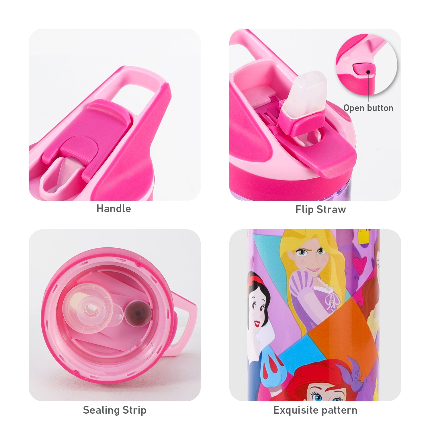 Disney Princess 620ml Water Bottle for Kids, School Drinks Bottle Made of Durable Tritan, Bpa Free, Disney Princess Bright & Bold